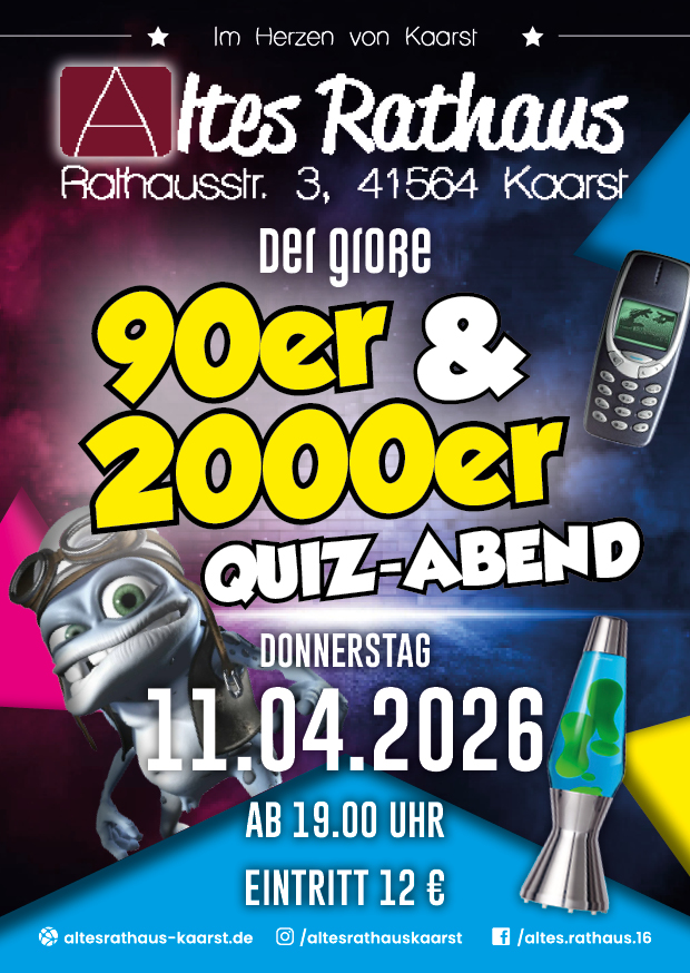 🧠✨ Das große Allgemeinwissen Quiz im Alten Rathaus Kaarst! 🏛️📚 Seid ihr echte Allrounder? Am 29. Januar 2026 stellen wir euer Wissen auf die Probe! Von Geschichte über Geografie, Kultur, Sport bis hin zu aktuellen Themen – hier zählt Köpfchen, Teamgeist und ein gutes Gedächtnis. 🤓💡 📍 Wo? Altes Rathaus, […]
