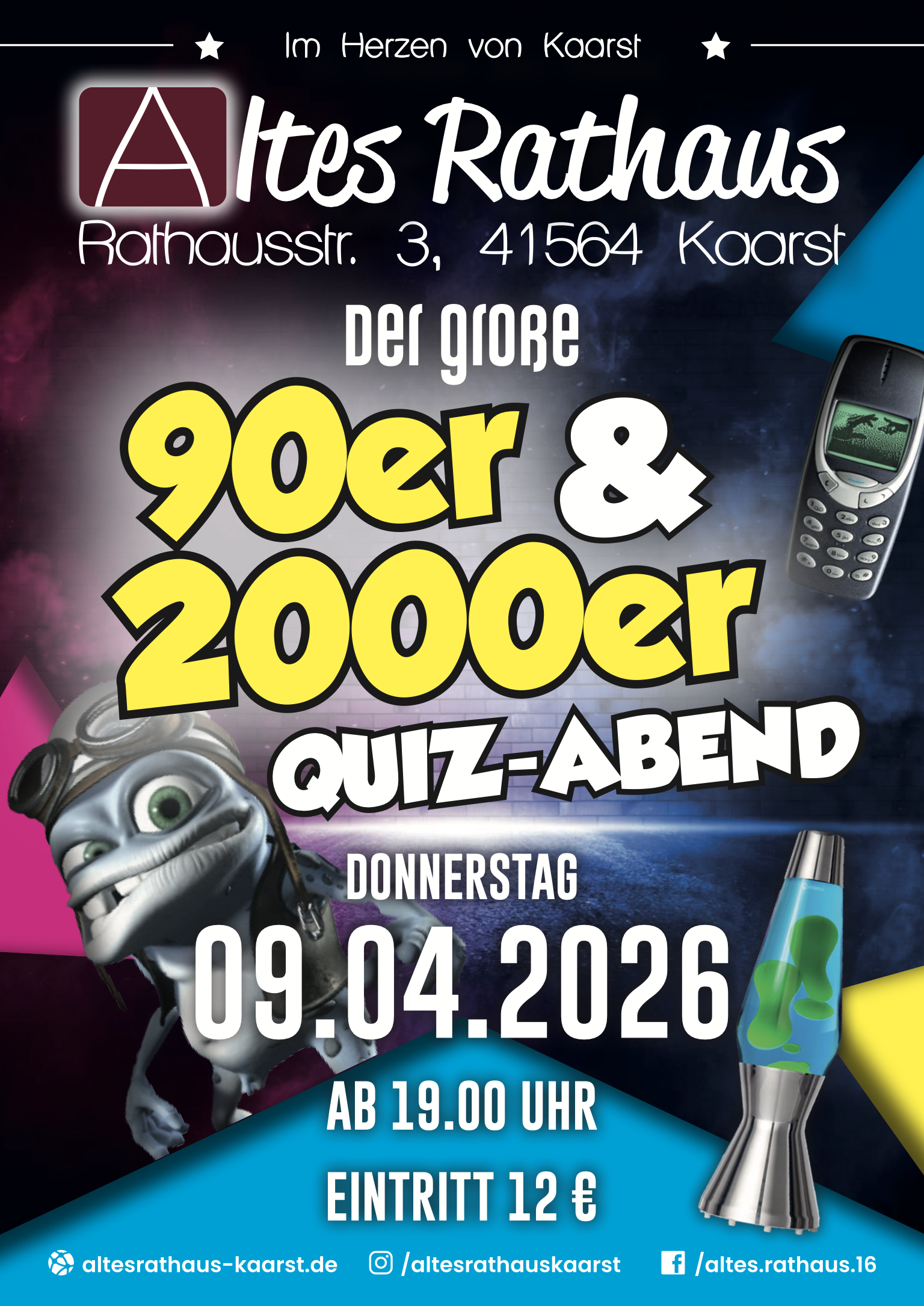 Altes Rathaus Kaarst Rathausstr. 3, Kaarst🎤📀 Back to the 90s & 2000s – Quizabend im Alten Rathaus Kaarst! 🎮📺 Seid ihr bereit für eine Zeitreise? Am 09. April 2026 testen wir euer Wissen über die legendären 90er & 2000er Jahre! Von Boybands bis Tamagotchis, von Friends bis Harry Potter – wer kennt sich am besten aus? […]