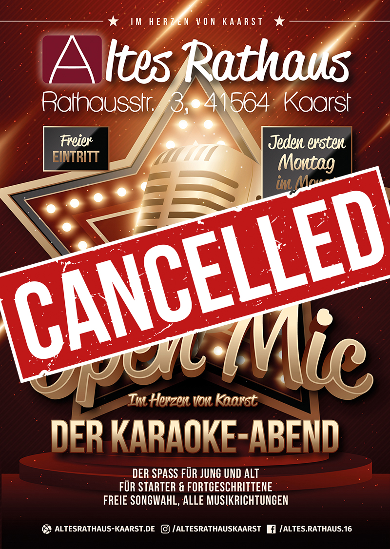 Altes Rathaus Kaarst Rathausstr. 3, KaarstOSTERMONTAG findet KEIN Karaokeabend statt !!! Karaoke-Party im Alten Rathaus Kaarst! Wann? Jeden ersten Montag im Monat Ab 19 Uhr Wo? Altes Rathaus, Kaarst Mach dich bereit für einen unvergesslichen Abend voller Musik, Spaß und guter Laune! Egal ob Jung oder Alt, Anfänger oder Profi – bei […]