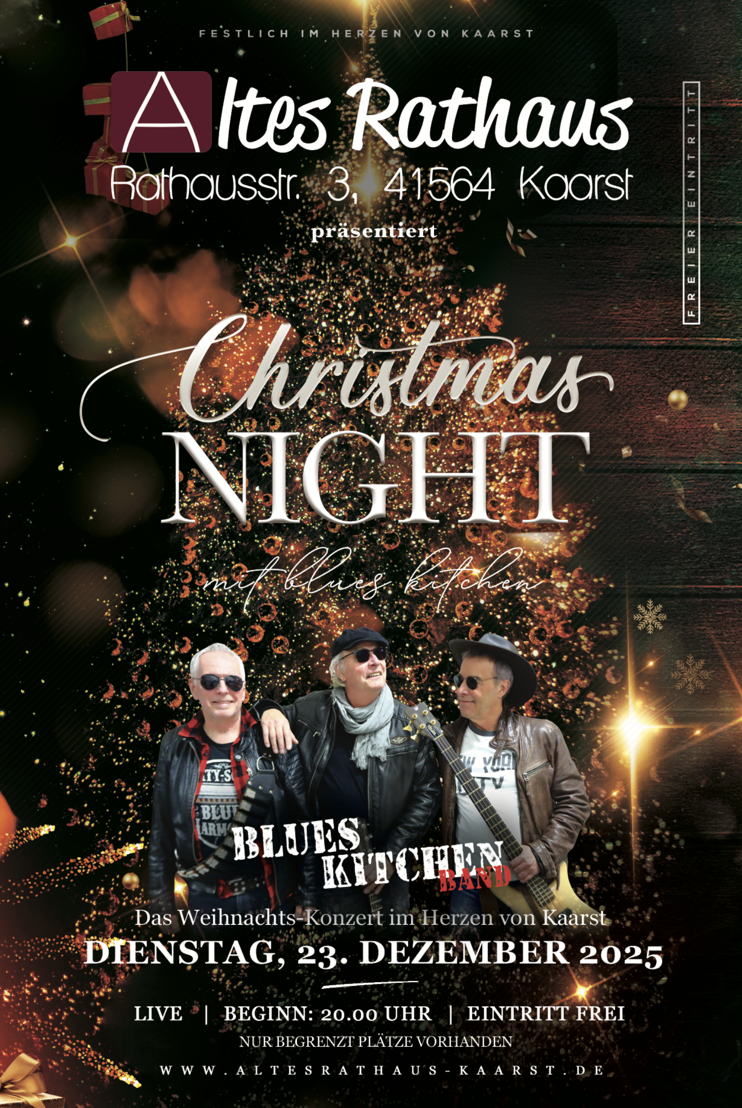 Christmas Night – Das Weihnachtskonzert mit Blues Kitchen im Alten Rathaus Kaarst! Am 23.12.2025 um 20 Uhr laden wir euch mit der Band Blues Kitchen zu einem unvergesslichen Abend voller stimmungsvoller Musik ein. Lasst euch im Herzen von Kaarst von weihnachtlichen Klängen und guter Stimmung verzaubern. Perfekt, um die Festtage […]
